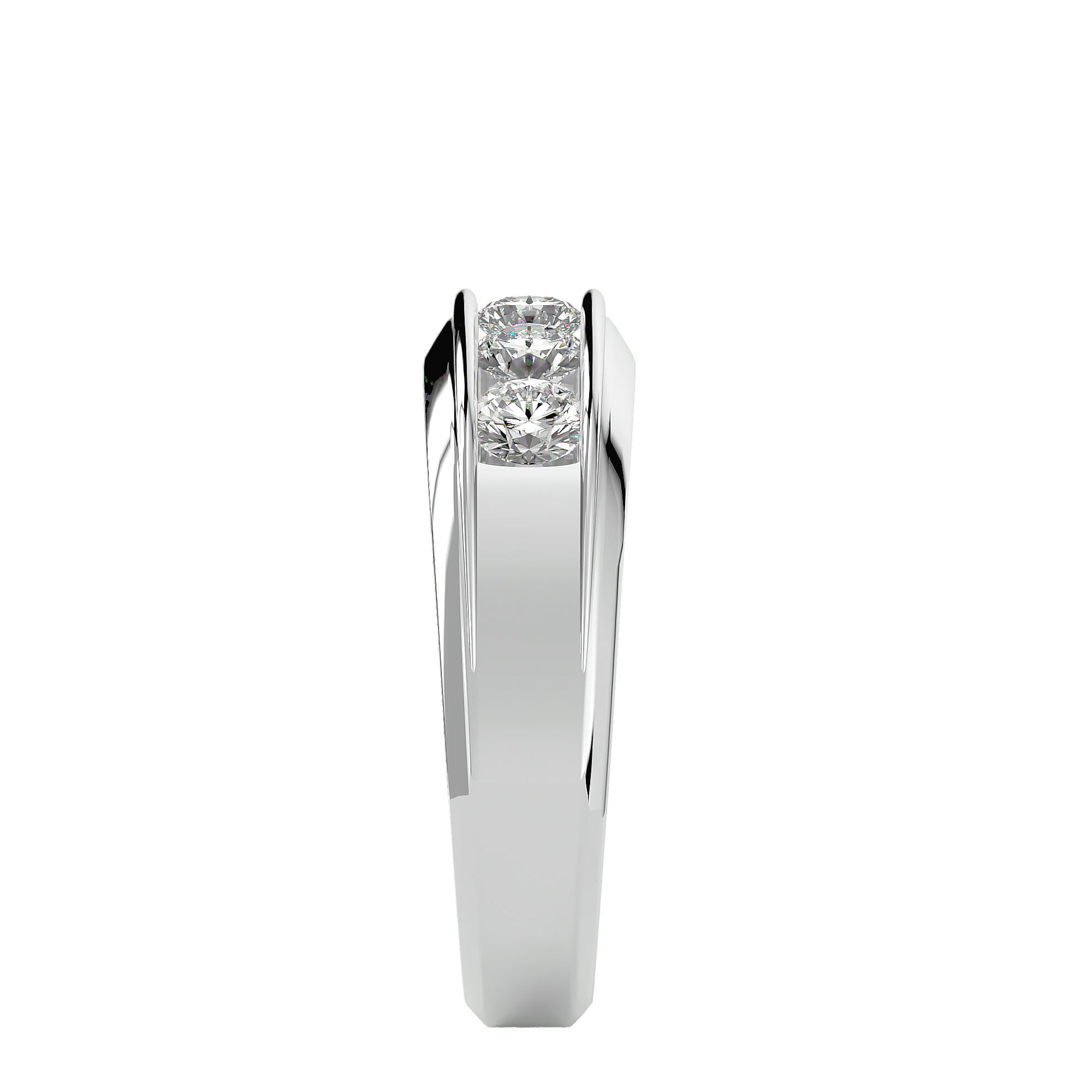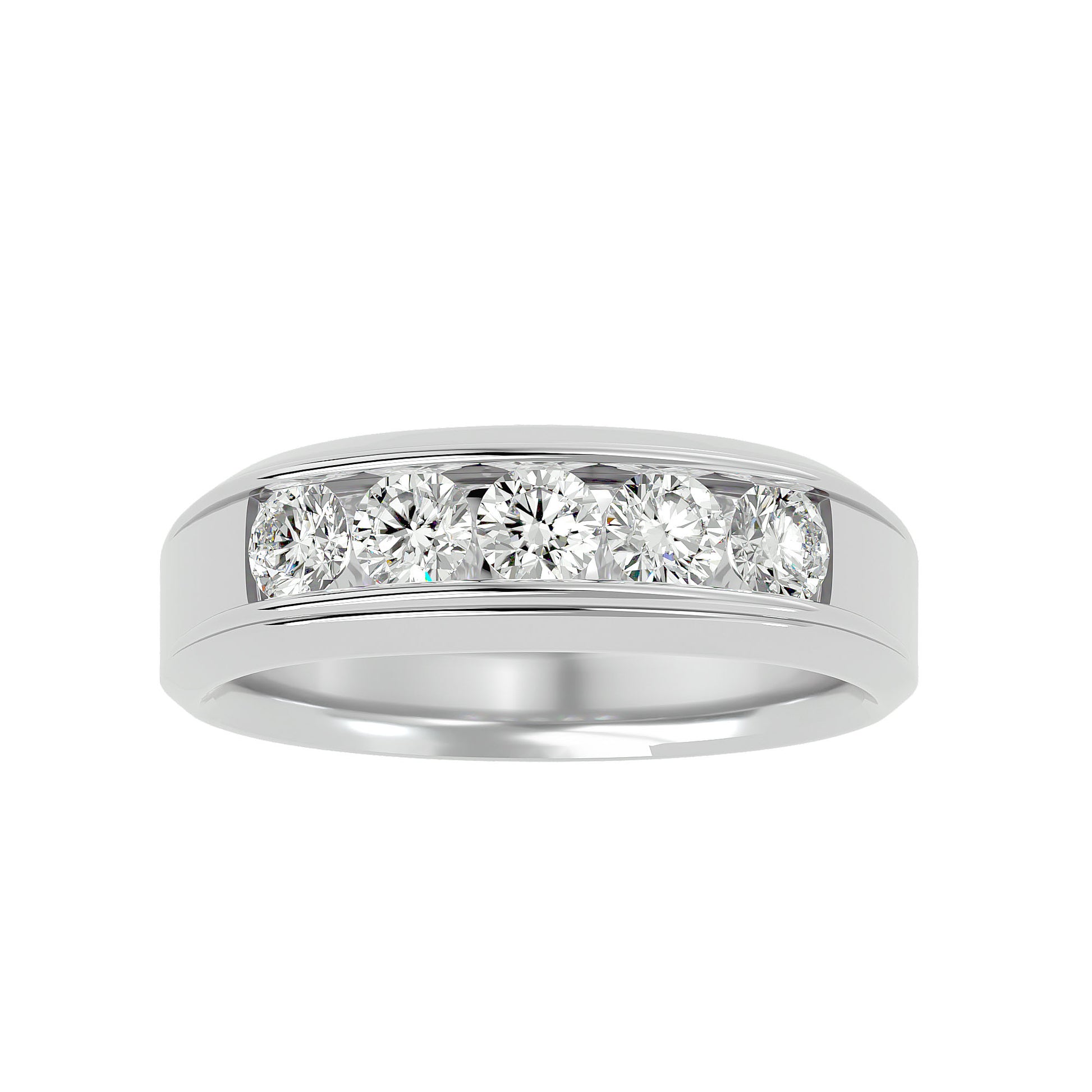 The Henry Men’s Diamond Band , a classic, broad band featuring four flush-set diamonds for a clean and understated look with lasting elegance.