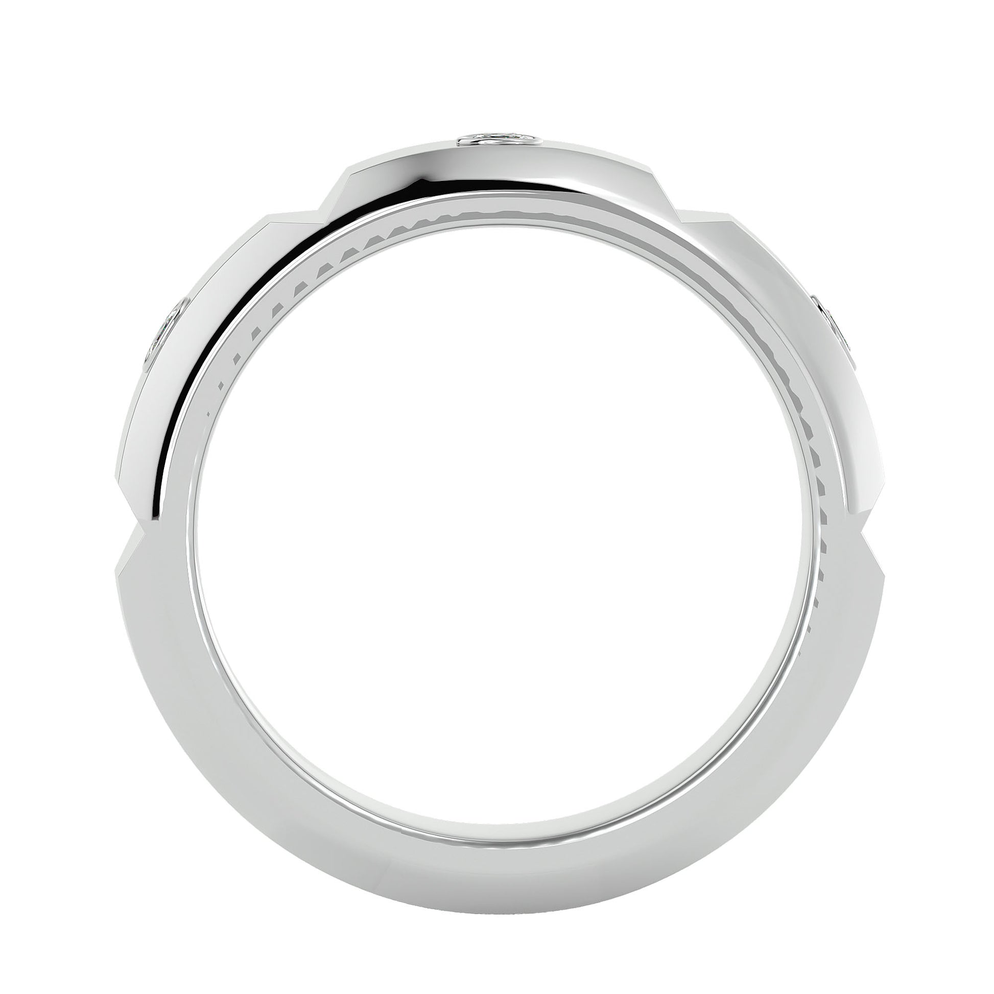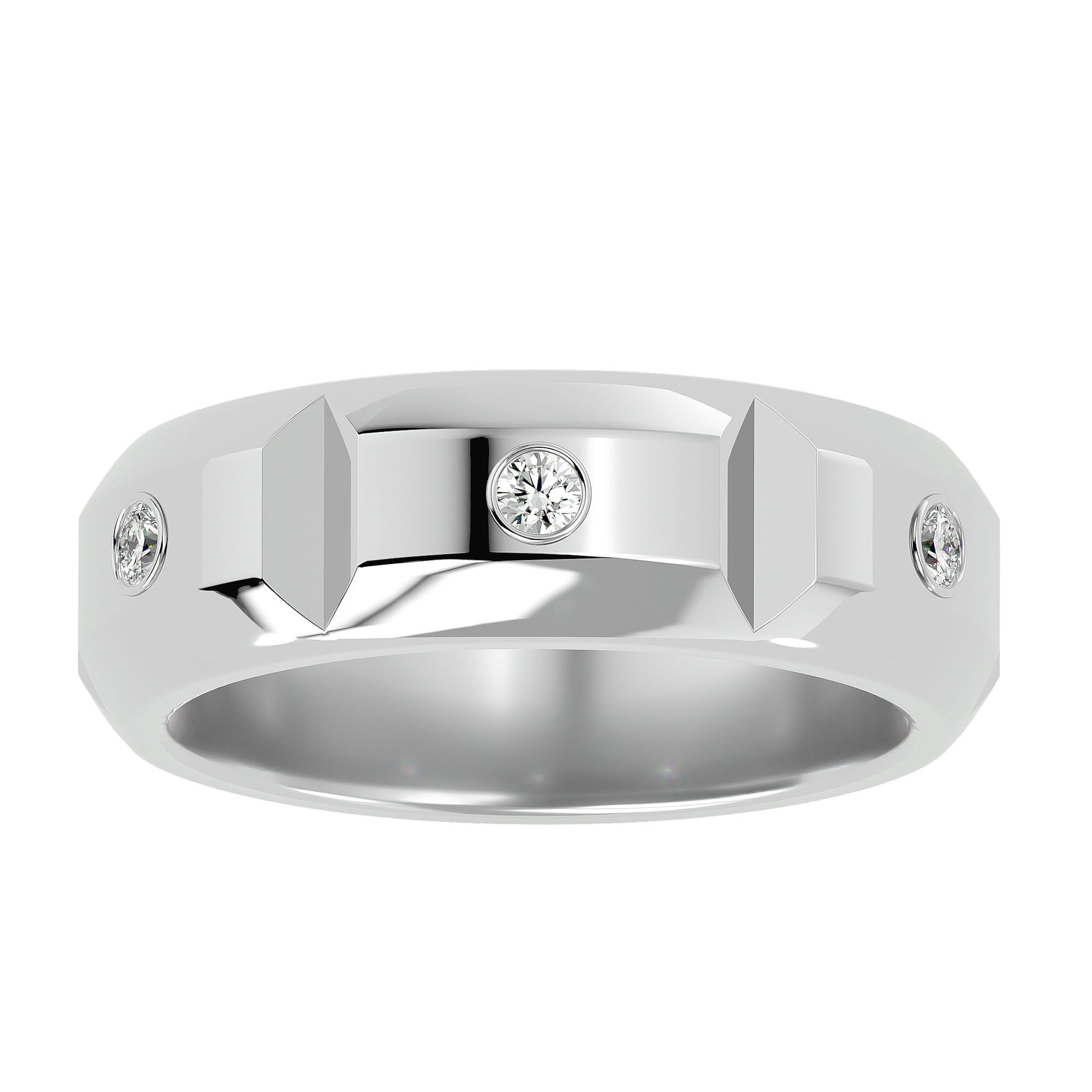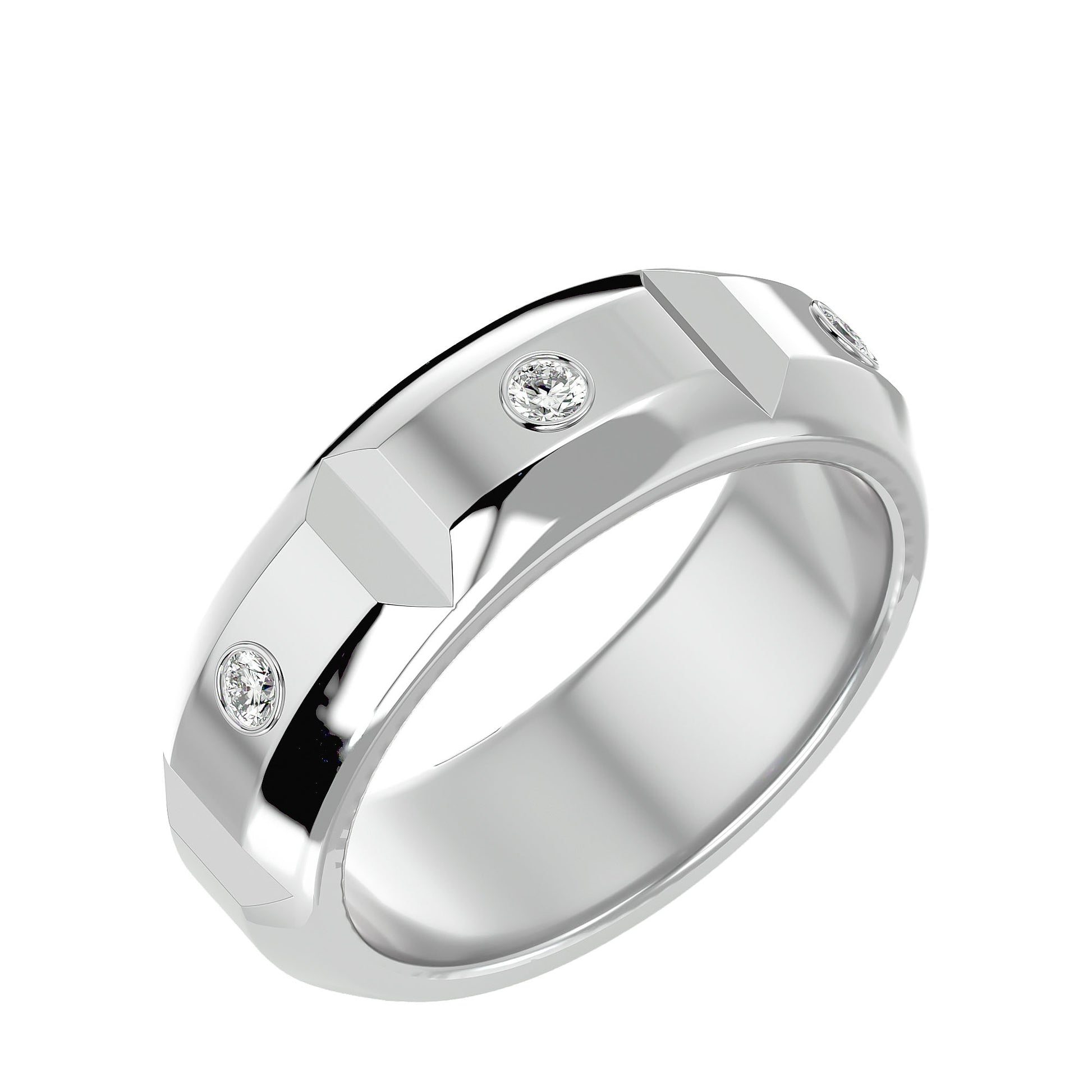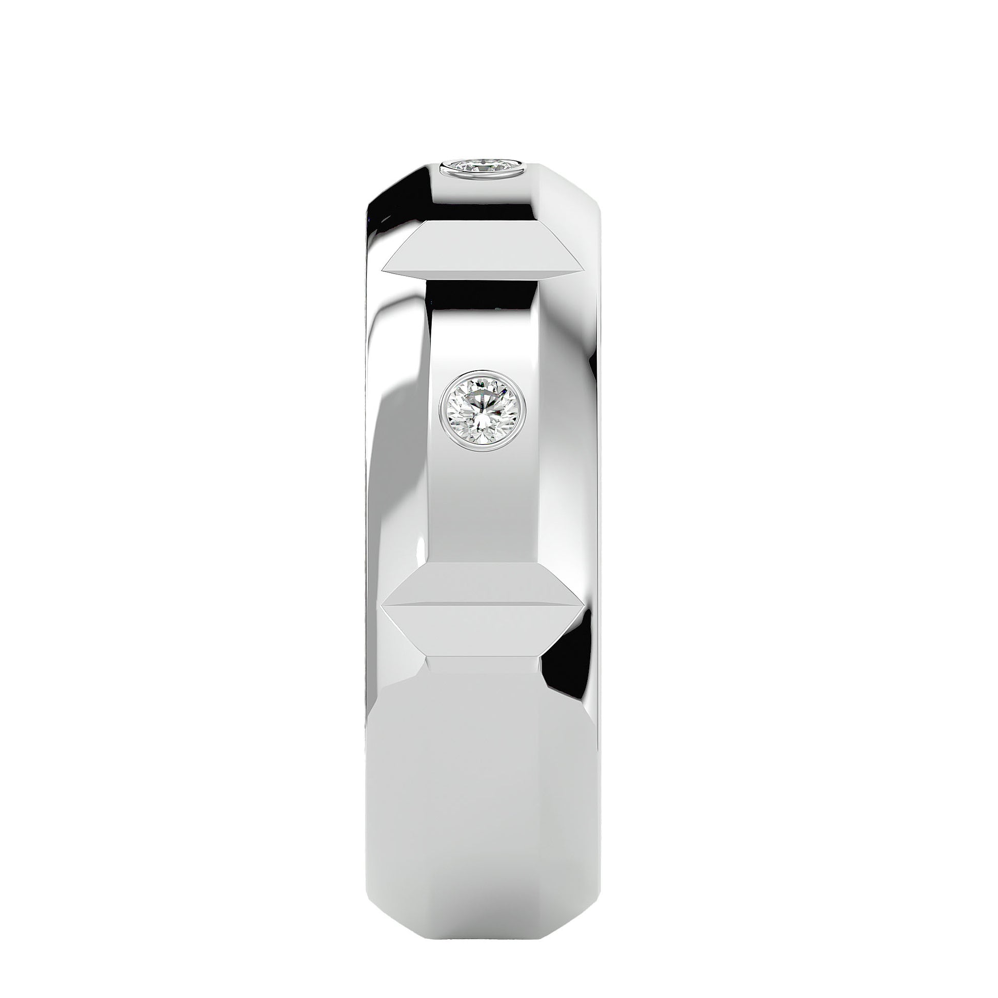 The Jason Textured Men's Band features a rugged textured design with four diamonds set in a flush setting, adding a touch of subtle elegance to the bold, masculine style.