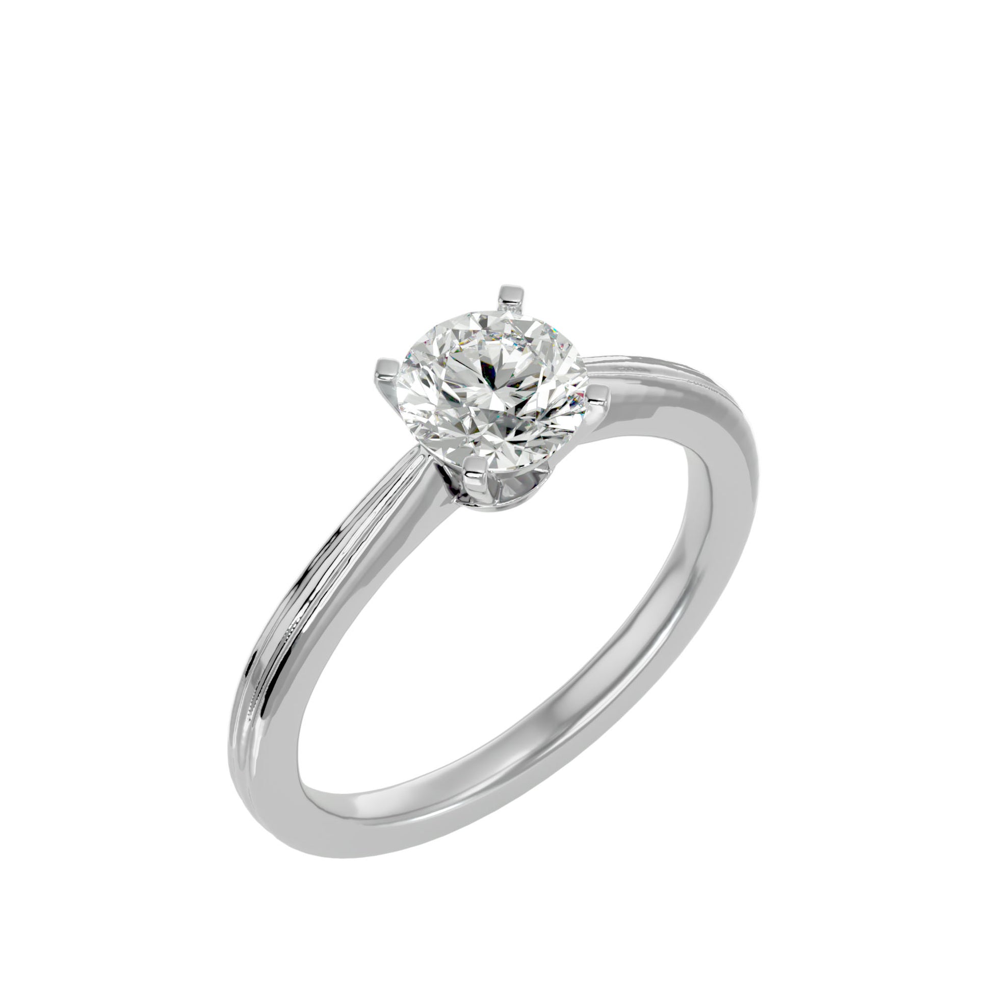 The Quinn diamond engagement ring features a beautiful center diamond set in a classic 4-prong setting. The design is completed with a sleek, straight plain dome shank, offering a simple yet elegant look that highlights the brilliance of the diamond.